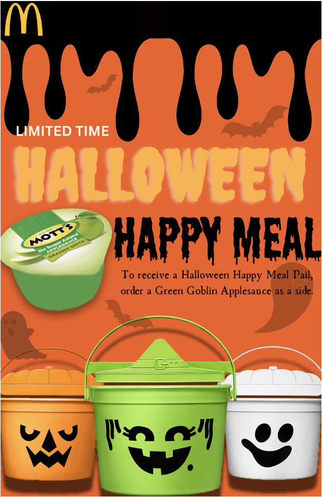 In continuation of the Hearty Happy Meal campaign, McDonald’s will bring back Happy Meal Halloween Pails for 2024, in addition to introducing a new, green apple flavored, applesauce side. Kids will only receive the decorative Halloween pail if they purchase the Green Goblin Applesauce as a side.